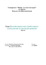 Доклад на тема: "Въздействието като необходимост за изпълнение на ръководно решение".